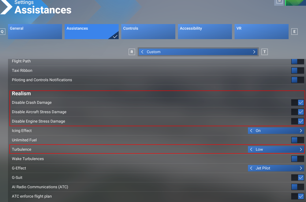 Hello, Please ensure there are no damage options enabled in the MSFS settings. It should look like this: Thank you π