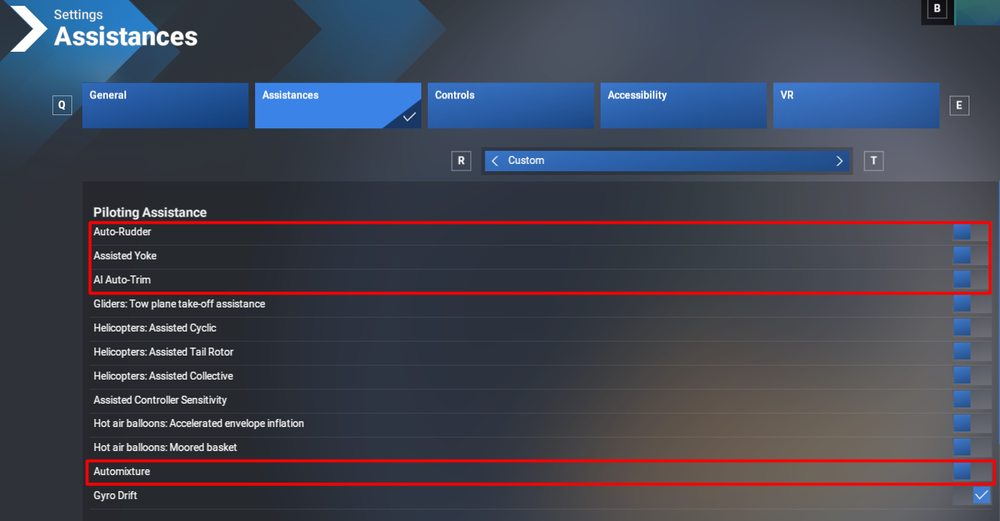 If your aircraft is not following the flight path correctly, please check your MSFS Assistance settings and ensure that the 4 options highlighted below in red below are switched to OFF.