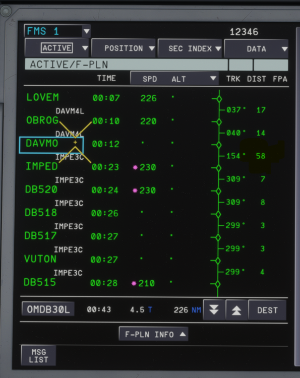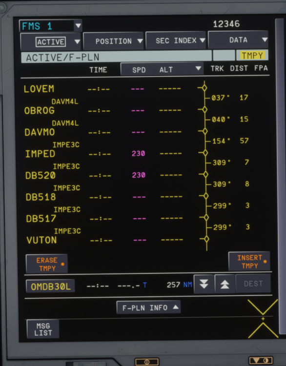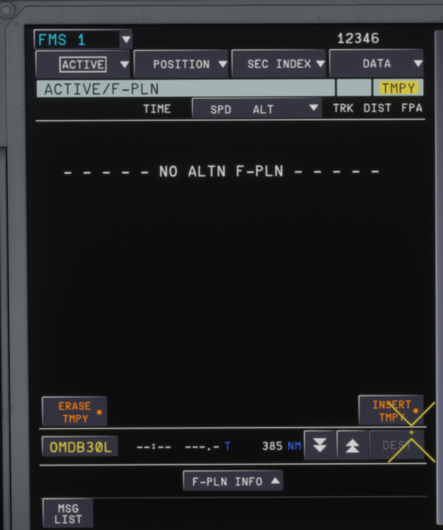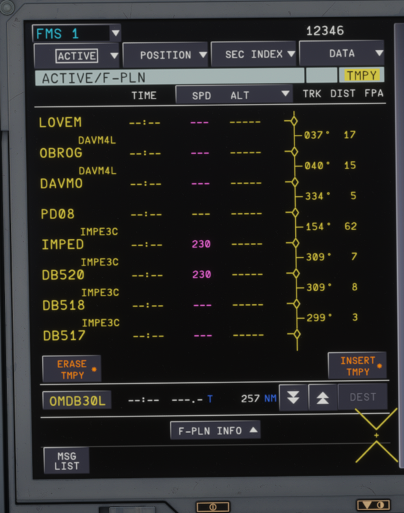 - Acceleration from engine failure (pressing ALT) - On reaching Green Dot – should show the thrust selected i.e. MAN TOGA with flashing LVR MCT underneath and this is where you would normally continue the climb and select MCT– BUT it does nothing.