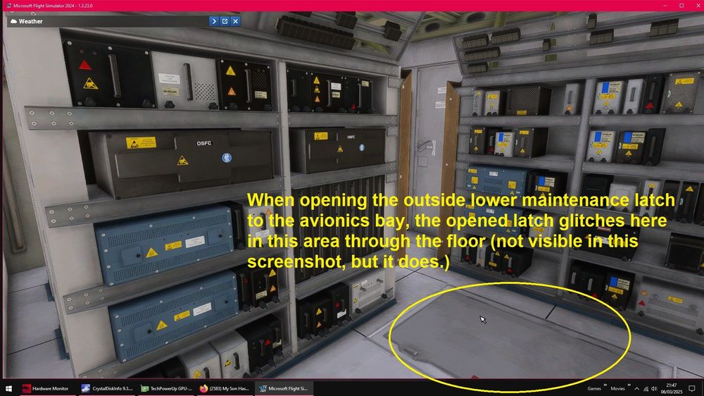 Good morning masters of virtual Airbus creation, that iniBuilds A350 is the most superior virtual aircraft EVER made! Finally an Airbus that was able to lure me back into flight simming and brought back the joy of flying by it´s pure awesomness system-depth and visual quality! 🙂 I have just found two small glitches in the FS 2024-version of this plane in the avionics bay, there is a strange 3D model glitch on wall-mounted switching box. That looks very ugly ... that otherwise so impressive avionics bay truly deserves this little glitch fixed. And when opening the lower outside avionics bay maintenance door the door is glitching through the closed floor. (Oh and I encountered two possible system glitches, but not sure if these are glitches or simulating real Airbus system quirks - I just think that it may be bugs so maybe worth a look.) Not sure if this is a glitch or fully correct, but the cockpit heating with the APU on and engines out does not function very well. In cold Canadian areas with -6° Centigrade outside I barely get the cockpit to 14° or 15° degree C with APU bleed air and both packs on. If this is correct - sorry my fault I don´t know enough technical data about the new Airbus 350, but I think the heating might be more powerful in real life. And the second strange thing I encountered is as long as the init MCDU page with departure and destination airport is not fully filled out and finished, I cannot do an ATIS message request on the MCDU Data / ATIS page. Otherwise absolute impressive plane. Beyond impressive!! Five out of five stars.