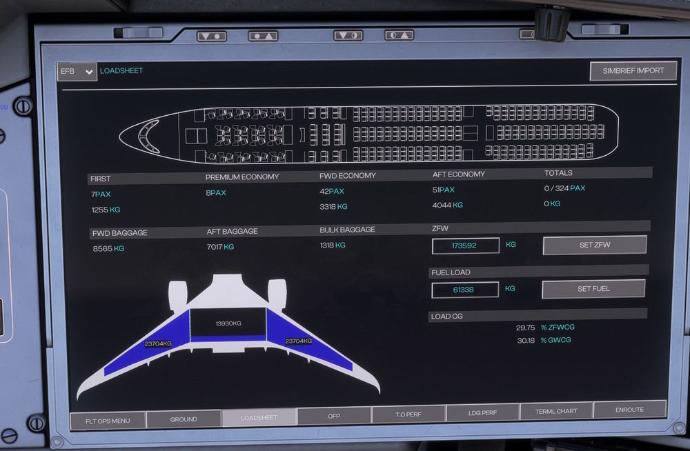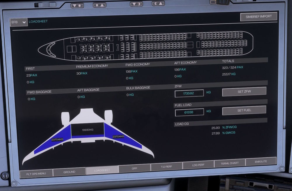 Weight and Ballance is unable to be changed inflight any attempts to set ZFW on the OIS just reverts back to zero. (Fuel can be changed)