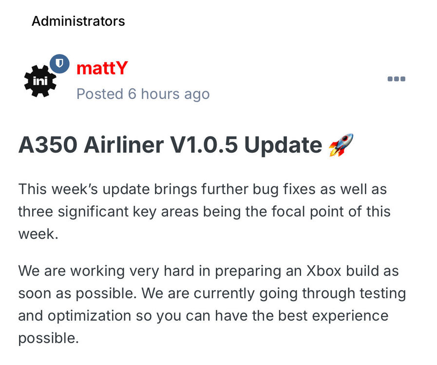So latest update states that Inibuilds is “working very hard on Xbox build”. What? I thought the working hard had already happened. I thought the Xbox build was already parked with Asobo and MS? I thought I had some version of the truth and some hope that Xbox was close.