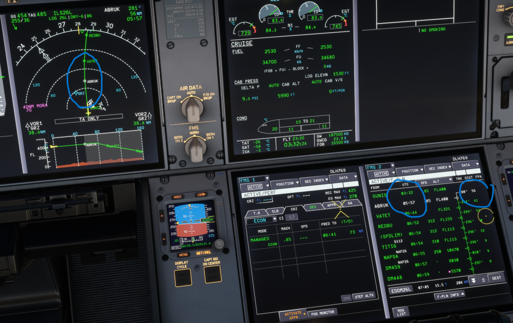 This time it was Singapore to Munich, MSFS 2020, A359 AROSO5B AROSO Y513 KALIL Y504 GUNIP N571 MEKAR/N0500F360 N571 SUGID/N0501F380 N571 MENSA DCT MITIX M557 TUMAK L602 ORSOL/N0489F400 L602 TASMI UL602 GADSI UM860 ODALI UL852 NEGEM L852 KOMAN DCT INVED DCT SUNIS DCT ABRUK DCT VATET DCT REDBU Q112 NAPSA FMS initially showed sensible timings but in the second half of the journey I noticed that the predicted arrival time had changed from around 04:00 to 07:28. T/D no longer shows on list on FMS. PS On the ground and parked up, clicking on the file in OIS Autosaves caused the screen to go black followed by the message "You overstressed the aircraft ... " and sent me to MSFS Main Menu !!! 1746392071.bin