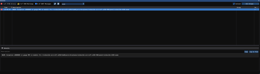 WASM: Exception c0000005 in gauge MFD in module vfs://inibuilds-aircraft-a350/SimObjects/Airplanes/inibuilds-aircraft-a350-900/panel/inibuilds-A350.wasm
