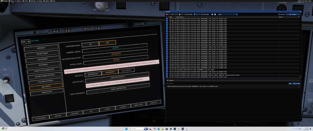 Hi @Eddie and @richboy2307 Hope you had a nice weekend. Thought of writing here once again. I'm having the same issue as written above again upon updating the latest AIRAC cycle. 2503 for MSFS24. To reproduce: Loaded at gate. Power on aircraft (GPU). RESET NAVIGRAPH CREDENTIALS. Successfully link navigraph to EFB. UPDATE NAVDATA. Triggers "downloading" and resets back to "UPDATE NAVDATA". I've reproduced this with a new clean installation of MSFS24 and as well as Navigraph HUB and A350 v1.0.5. And, I've spent 4.5 hours today trying to resolve this repeating all the steps above at different airports with multiple reinstallations but no success so far. Information: Aircraft: A359 and A35K. Simulator: FS24. Navdata Method: NAVIGRAPH. Specs: i7-14700KF, RTX4080 Super 16GB, 64GB RAM. WASM: [msfs_navigation_data_interface.wasm] [NAVIGRAPH] Task failed: No database open Hopeful in finding some solution. Please let me know if you'd need further data. Best, Atul Mishra.