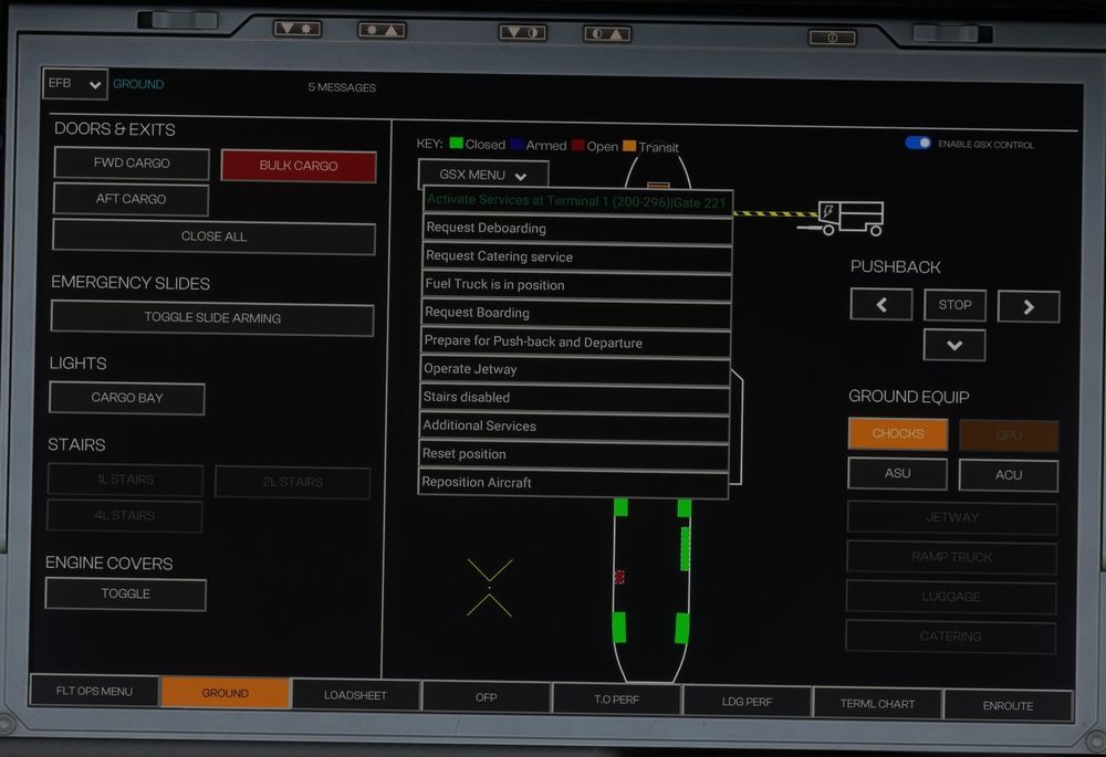 So I have to connect the inibuilds GPU, turn GSX control on, do the fueling and boarding, turn it off again, and then I can disconnect the GPU.