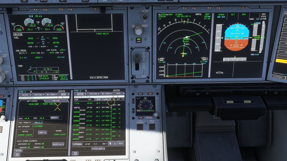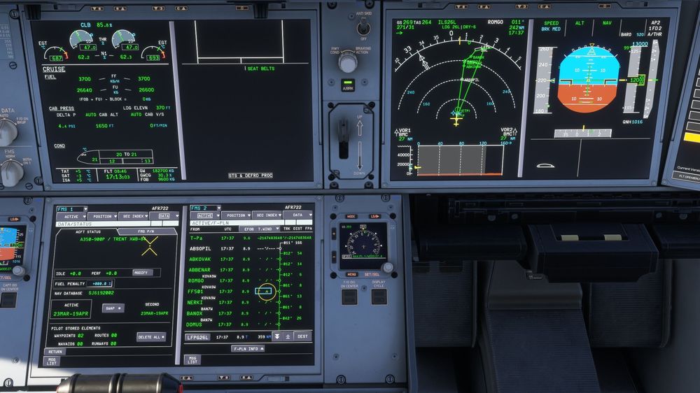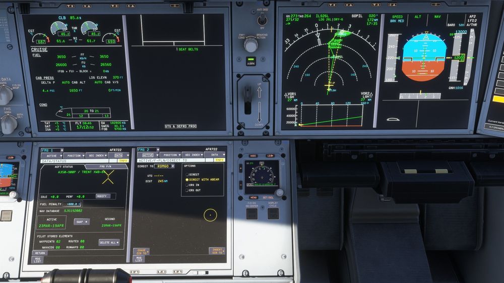 1. Hello, I've stumbled upon a strange behavior of ND drawing a second path and an infinite wind direction if a Direct With Abeam is used if a F-PLAN has a MANUAL pseudopoint. Steps to reproduce: Load A350-900 Set an arrival to LFPG RWY 26L Set ILS26L, VIA BAN7W, STAR KOVA9W Have at least one fix before the first STAR fix, e.g. SOPIL (make a standard direct to, as necessary) Do a DIRECT WITH ABEAM to fix ROMGO (third on the STAR) Observed: ND draws a second line (likely either to the MANUAL or final fix) T.WIND computed shows infinite numbers (32bit signed int), like -2147483648°/-2147483648 Product versions: A350 Airliner V1.0.10 MSFS 2024 SU2 Please let me know if you need more information, or have a suggestion where to report this bug. Thank you.