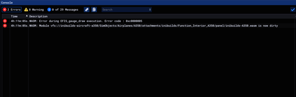 1. Steps required to reproduce the crash: Was at FL340 using sim navdata Changed OTHH arrival to 34R and wiped FPL went on INIT page to SEL RTE and added route again as CPNY FPL was greyed out FPL page was not showing ETA or doing auto step climbs went to SEC INDEX page and did CPNY FPL REQUEST and then WASM crash happened