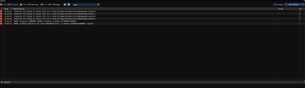 2. Hi Eddie, any update on the above wasm crash fix? Just got it when I was programming alternate route into sec-fpln... Thanks, Clinton