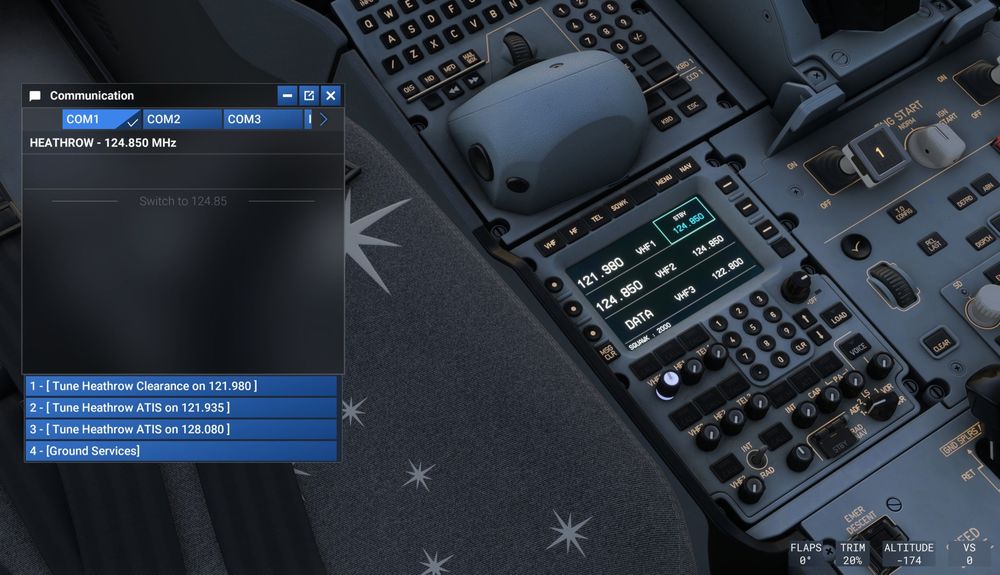 3. I can tune manually but if I select option 1 Tune Heathrow Clearance nothing changes. The Comm window remains the same. ATIS will connect and hear ATIS info. Very frustrating!!!!!