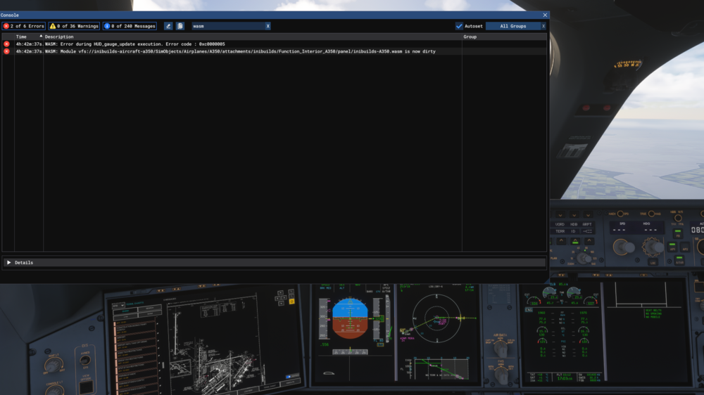 WASM: Error during HUD_gauge_update execution. Error code : 0xc0000005