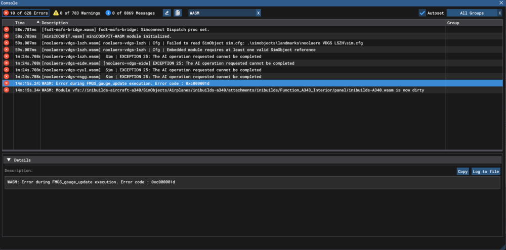 WASM Error: "WASM: Error during FMGS_gauge_update execution. Error code : 0xc000001d"