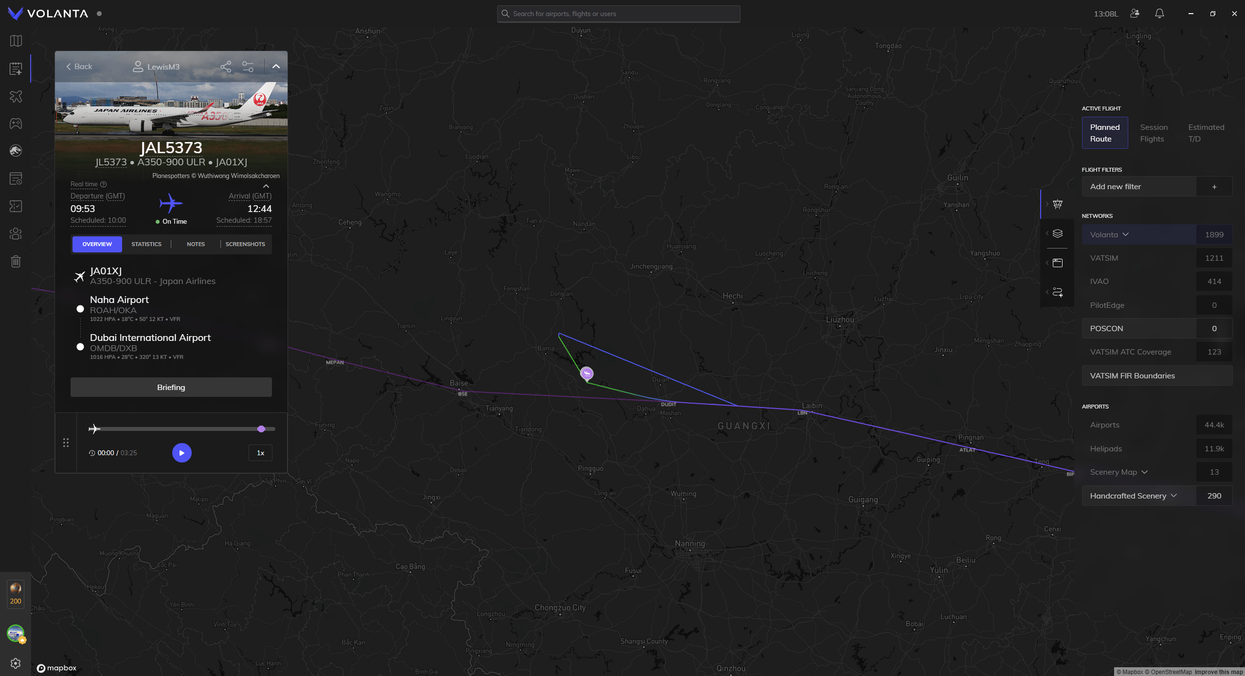 Taxi to runway, take off. Climb to cruising altitude (could only make it to 26,000ft rather than 36,500ft).