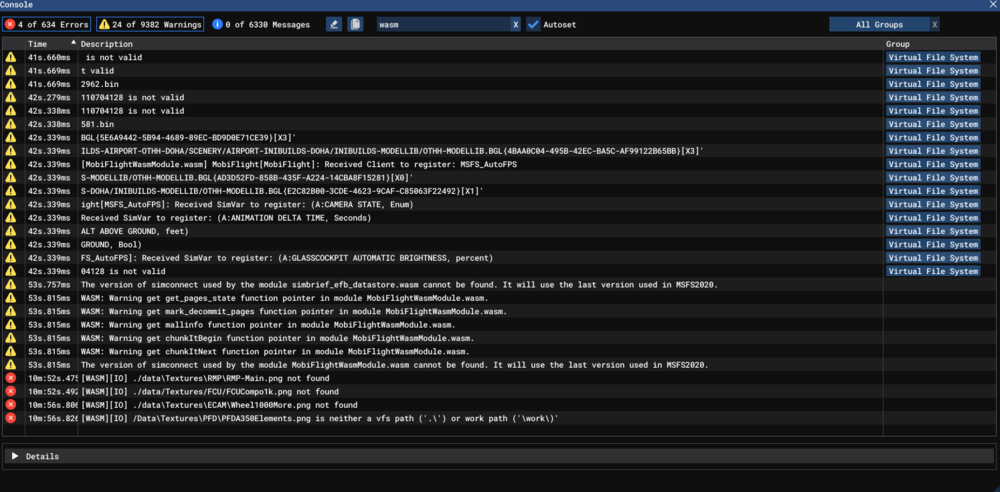 I have attached WASM Console Log as message length doesn't allow me to copy and paste without exceeding maximum length, also including .bin files.