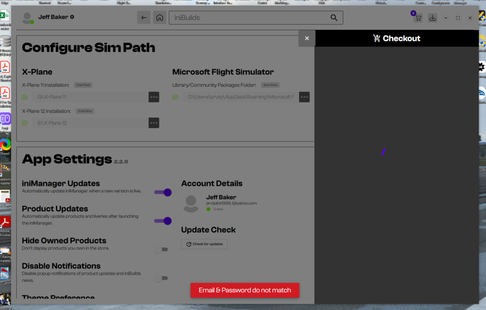2. When I go to check out a red box comes up telling me that email and password are incorrect. I un-installed app and re-installed. I also verified my email and password which are correct or I would have never gotten on the website to begin with. Any help is appreciated. Thanks.