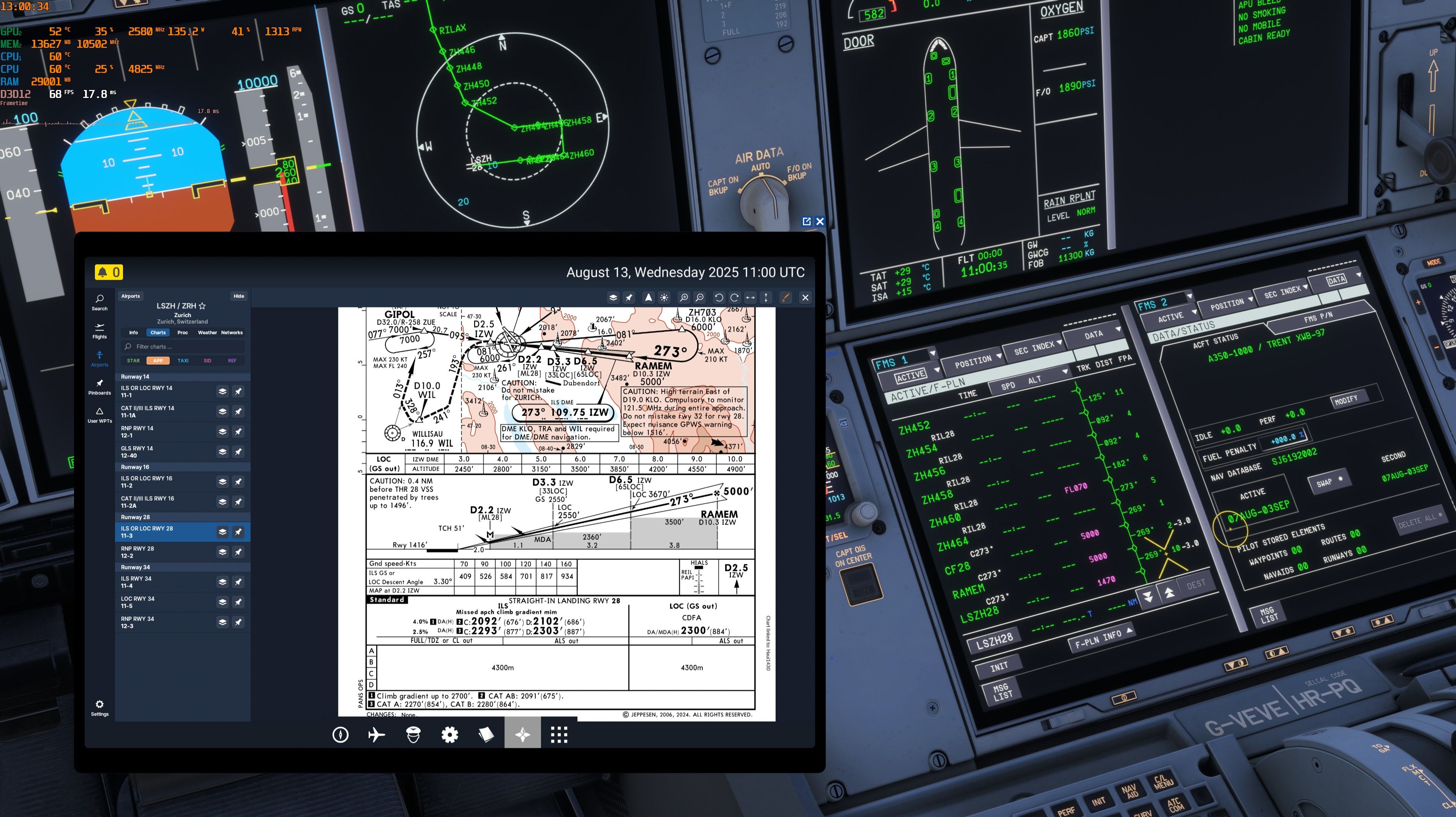 Haui Posted August 14 Posted August 14 I've noticed that on some approaches the ini A350 FMS uses wrong VPA for the final segments. It seems to default to the standard 3.0° of most ILS approaches regardless if it actually is an ILS approach. Here are some examples for airports/approache combinations: LIRN;RW06;NPC;3.5 LIRN;RW24;INPL;3.33 LSZH;RW28;IZW;3.3 LSZH;RW34;IZS;3.3 They are all non-standard VPA differing from 3.0° but the ini A350 ALWAYS calculates 3.0°. This was also reported to Navigraph on their forum (https://forum.navigraph.com/t/a350-airac-2506-all-approaches-at-fixed-vpa-3/20127/2) and Navigraph verified that their data is correct. So this has to be an issue with the ini A350 FMS. Even the wonderful freeware A380X gets this right, as shown in the screenshots below of the LSZH ILS RWY 28 Approach. ini A350: FlybyWire A380X: Please take a look at your code and to make sure there is no rounding or something else going on. Thanks!