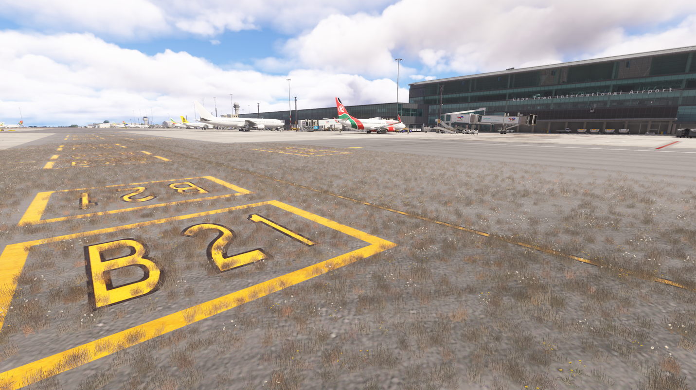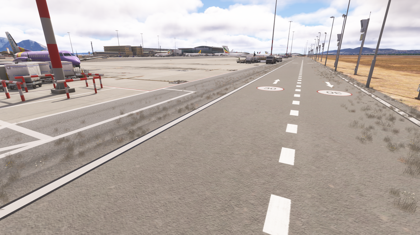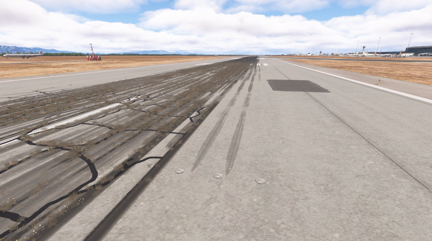 This airport has a lot of weed and little flowers on some places along taxiways and runways. Not sure if this is someting present in real airport, but I don't think so. Could it be for some other addon?