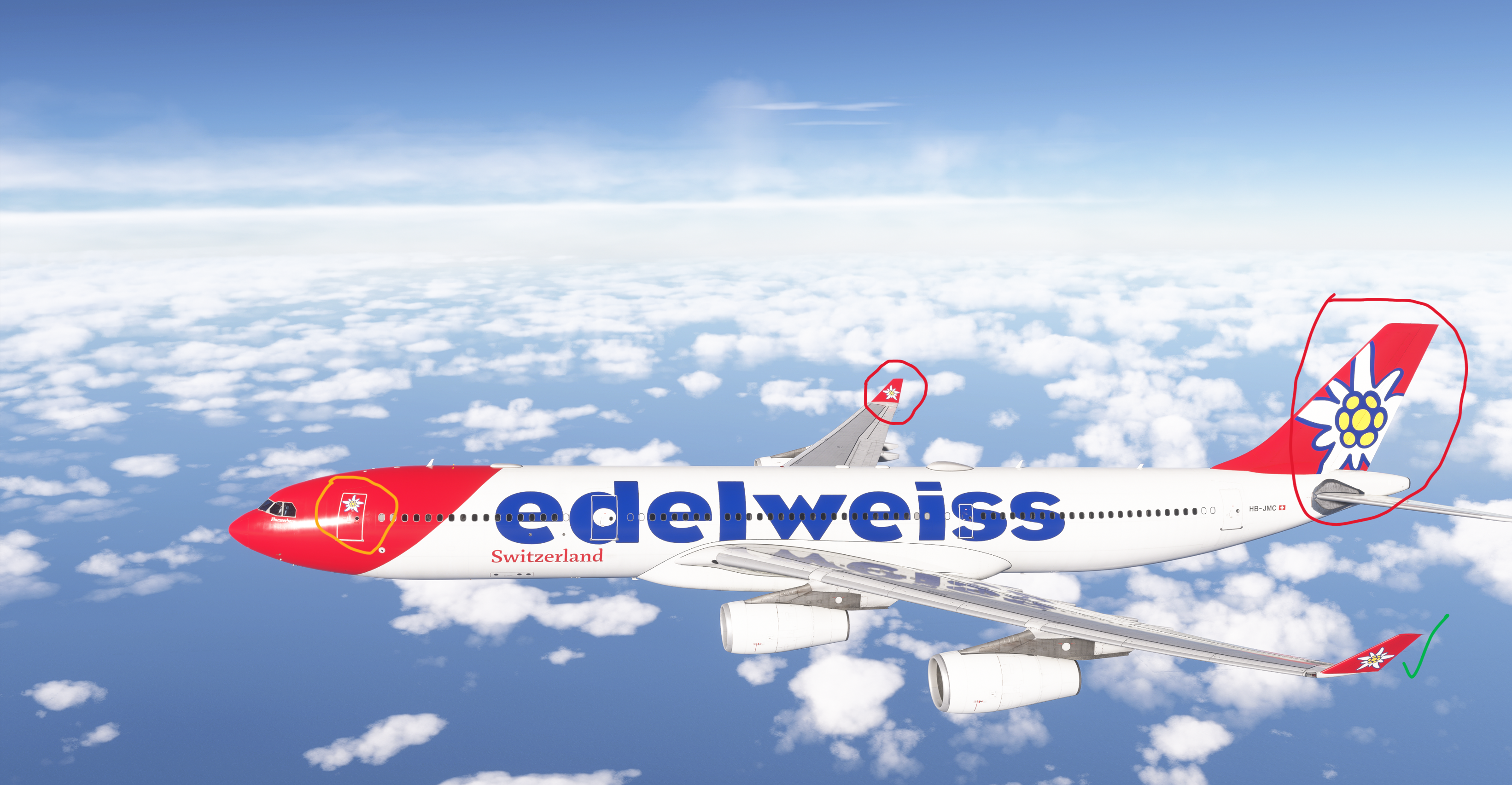 Tarek1991 Posted December 16, 2025 Posted December 16, 2025 Dear inibuilds Team I oticed that on all Edelweiss liverys, the flower on the tail fin, front door 1L and on the right hand winglet (in and outside) is mirror-inverted. Would it be possible to adjust this with a livery update? Kind regards Tarek